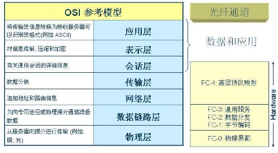 FC-4:協(xié)議映射層,定義了光纖通道和上層應(yīng)用之間的接口,上層應(yīng)用比如:串行